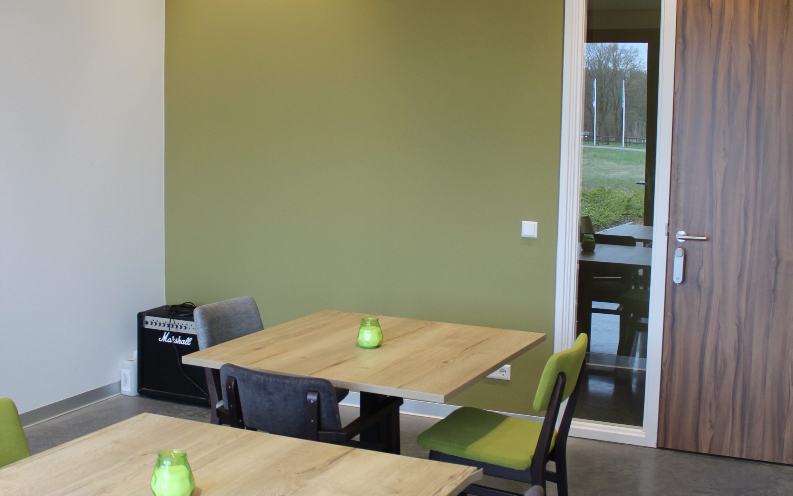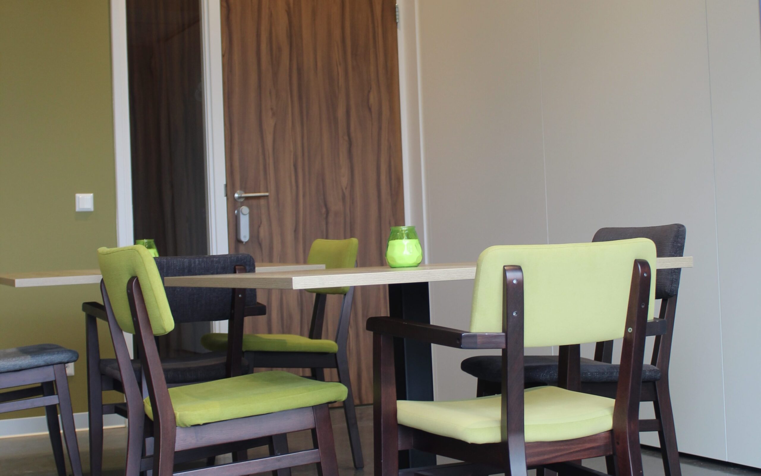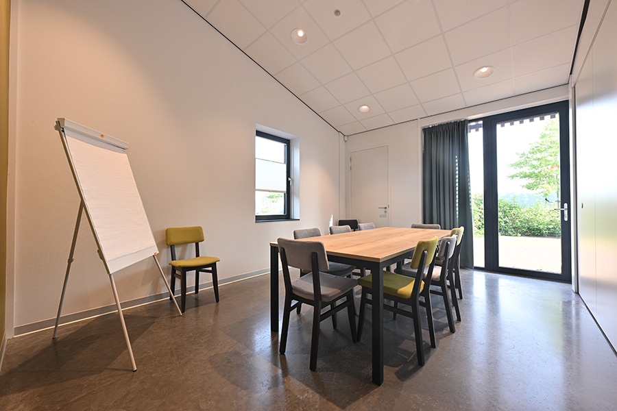 Zaal 5 is een kleine ruimte gelegen aan de achterzijde van het gebouw, de zaal in eventueel via een eigen ingang van buitenaf bereikbaar. Deze zaal is ideaal voor vergaderingen en heeft een oppervlakte van 18 m2. De standaard opstelling is 1 grote tafel á 8 personen. Wilt u liever een andere opstelling? Geen probleem, geef het aan in de boeking.